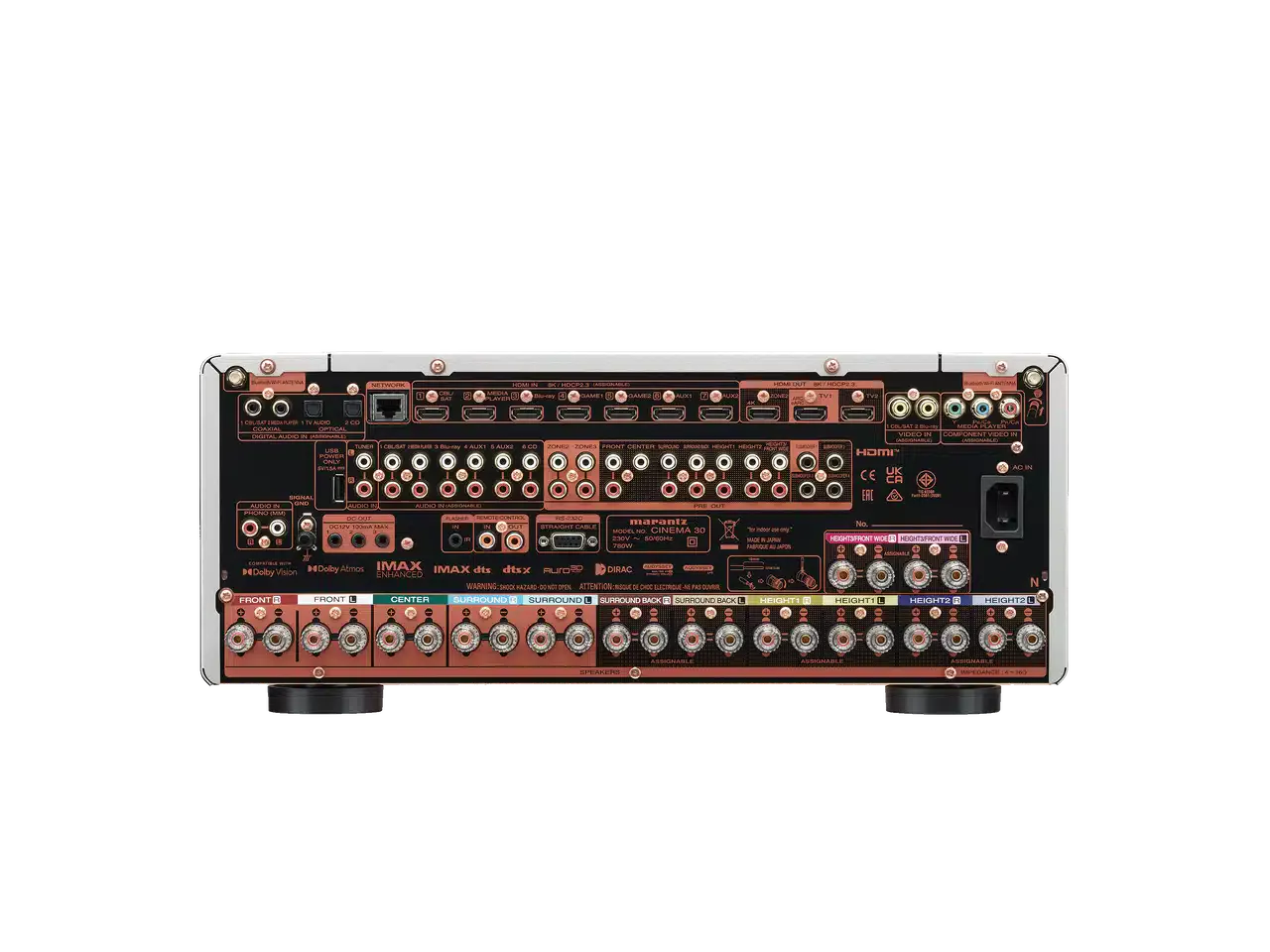 Les technologies hi-fi telles que le HDAM SA-2, les amplificateurs monolithiques symétriques, les alimentations à base de transformateurs toroïdaux, et bien d’autres encore, permettent au CINEMA 30 d’atteindre des niveaux de performance rarement atteints par un AVR.