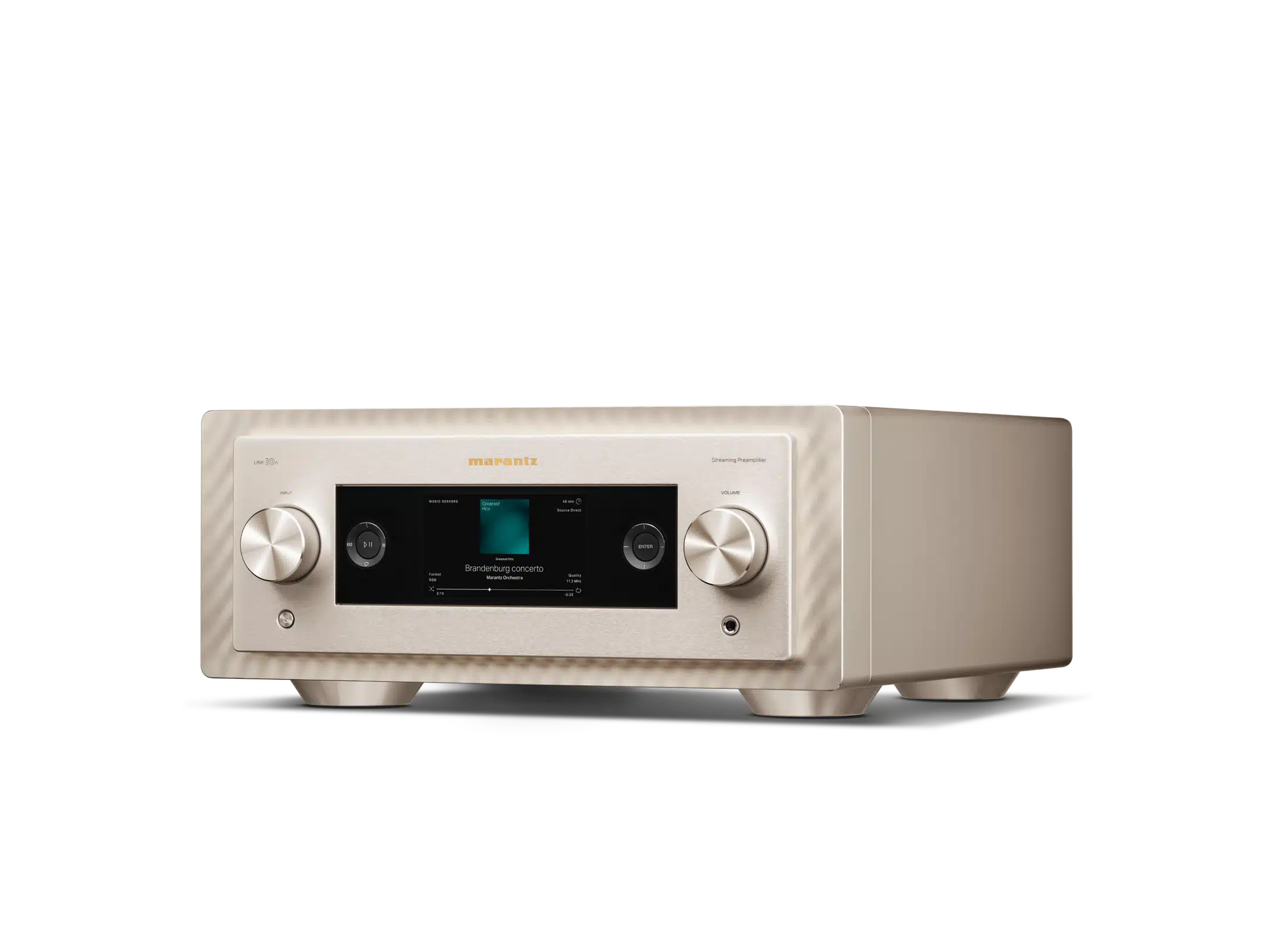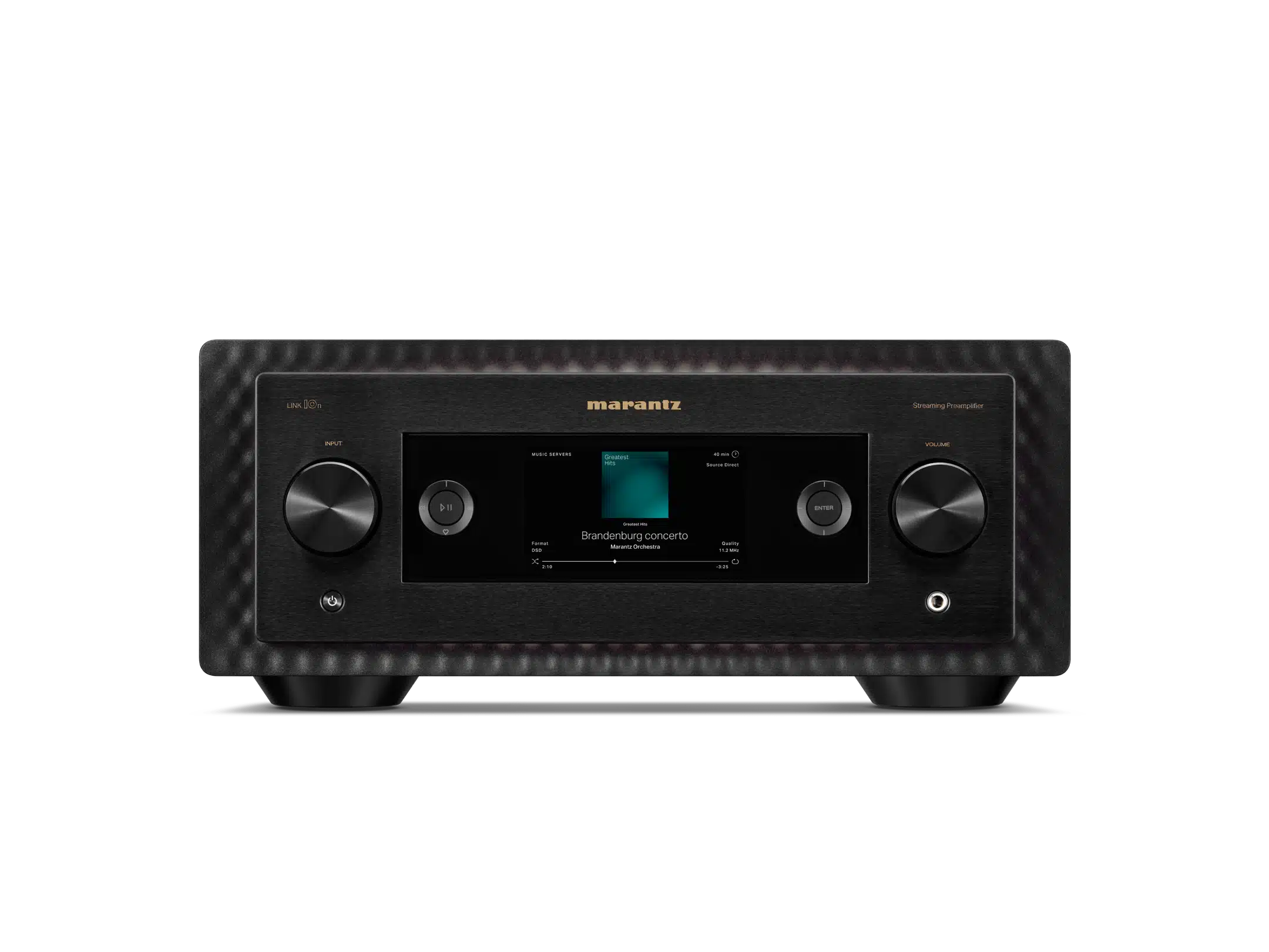 La surface de contrôle en aluminium usiné et brossé, la coque arrière sculptée, les boutons rotatifs et l’écran couleur haute résolution sont autant de caractéristiques frappantes des composants de la série 10. Le design est à la fois distinctif de Marantz, s’inspirant des modèles classiques, et résolument contemporain.