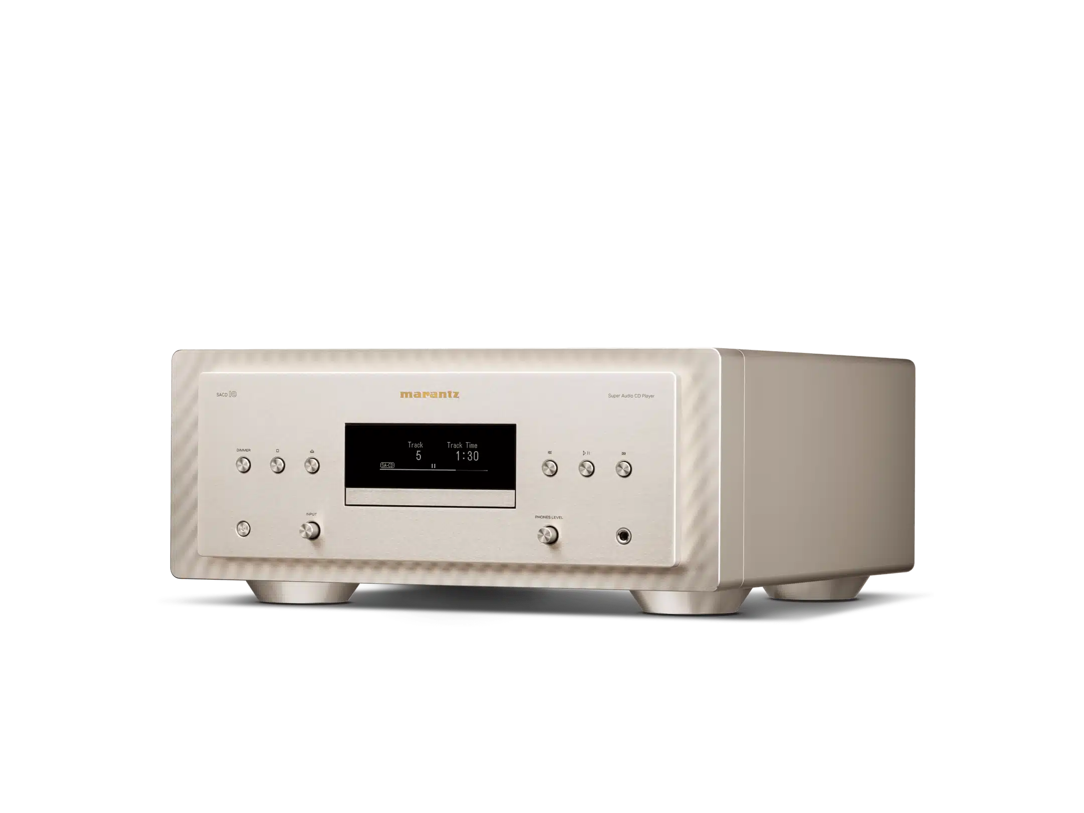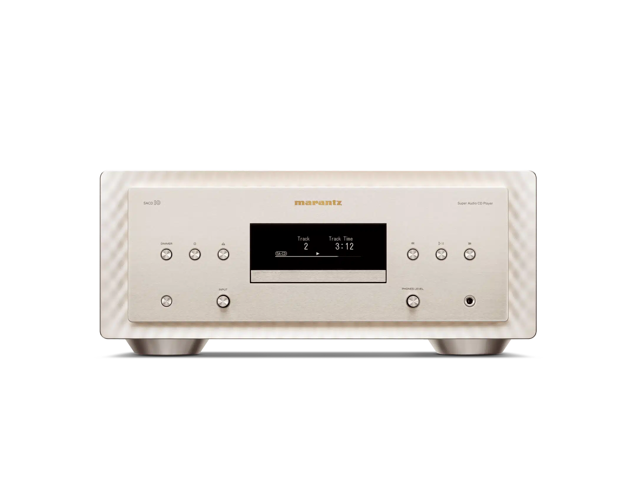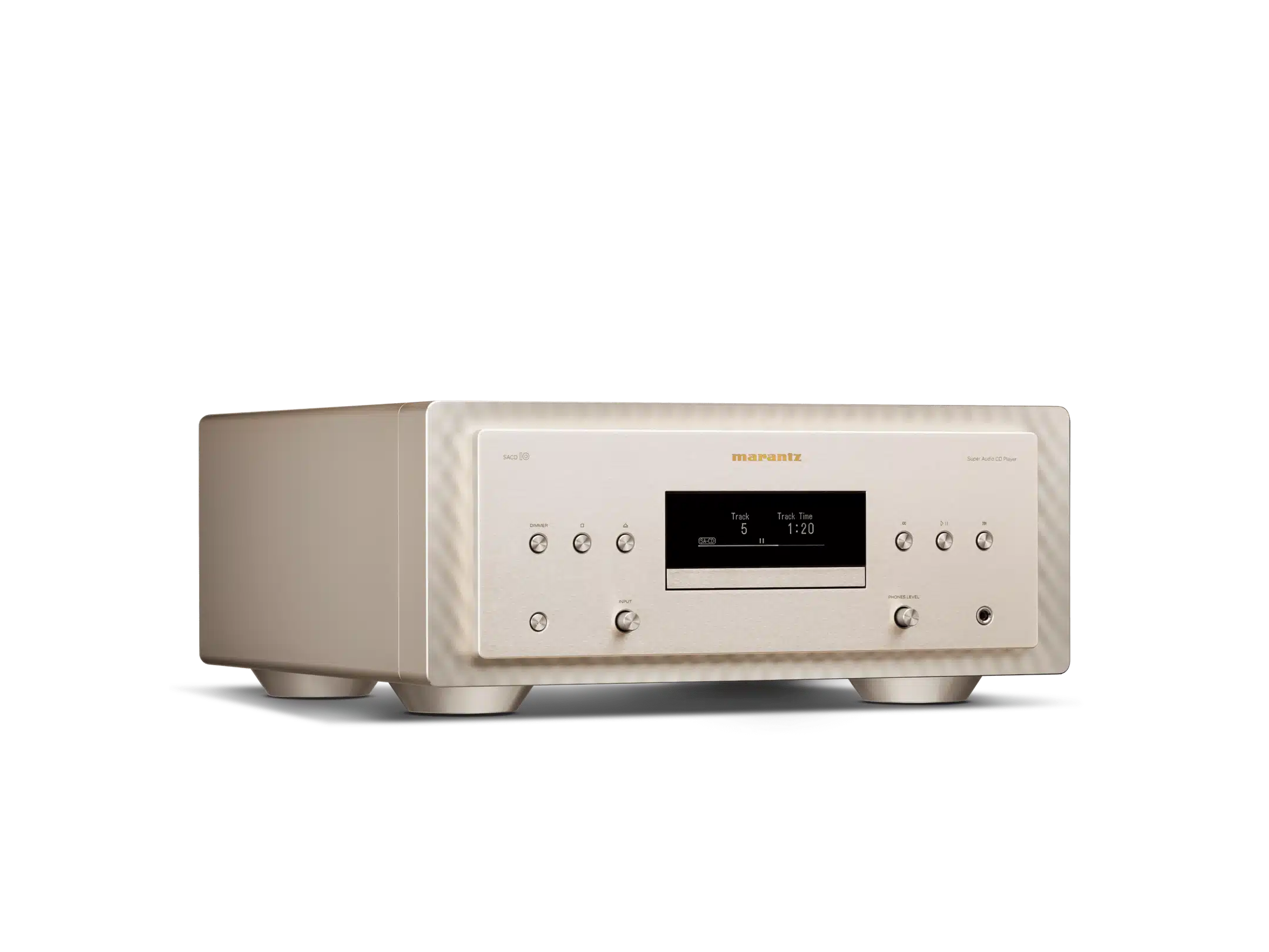 Avec une façade en aluminium brossé, des détails en finition filée, une structure en aluminium épais, un châssis triple couche cuivré, le SACD 10 est dans une classe à part. Disponible en deux coloris, Marantz Black et Marantz Champagne, pour s’adapter à tous les environnements.