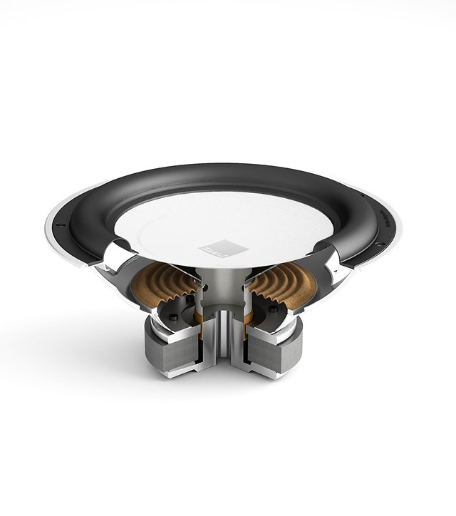 Un haut parleur de 230 mm alimenté par un amplificateur digital très puissant de 220 Watts vous garantit des basses profondes, denses mais aussi précises et maîtrisées. La membrane du haut parlée est fabriquée en aluminium, ce qui apporte à la fois rigidité et légèreté et confère au caisson un look high tech du meilleur effet!